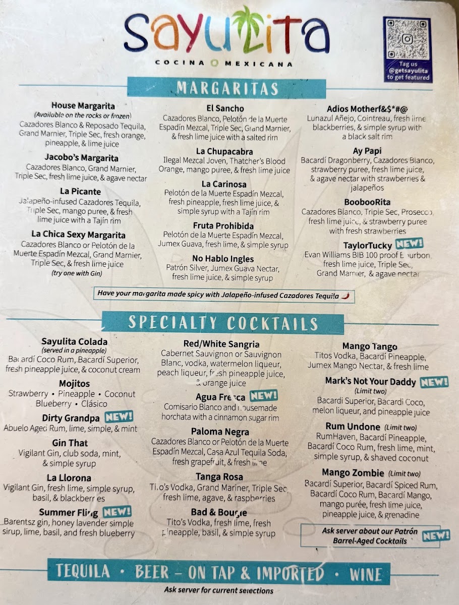 Sayulita Cocina Mexicana offers a menu that balances casual comfort with authentic Mexican flavors, perfect for a relaxed meal or an evening out with friends. The selection features a variety of satisfying dishes and refreshing drinks designed to complement a laid-back atmosphere—a place where fresh ingredients and familiar favorites come together without fuss.