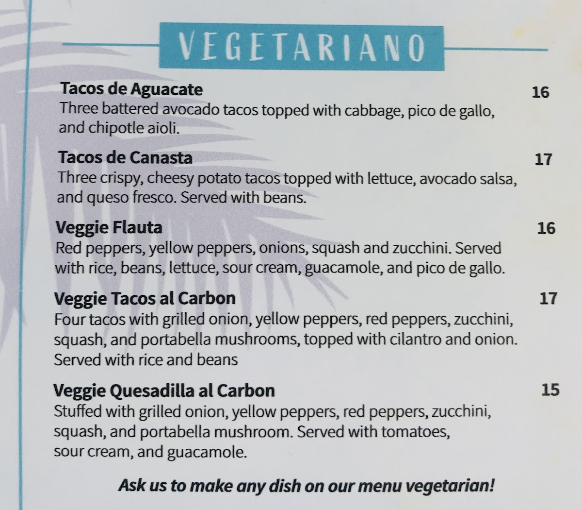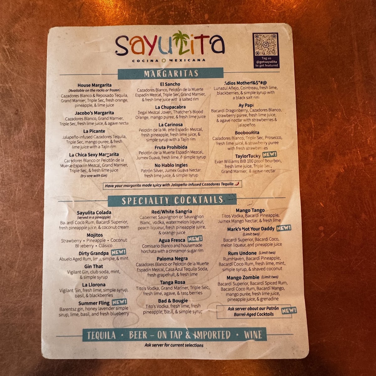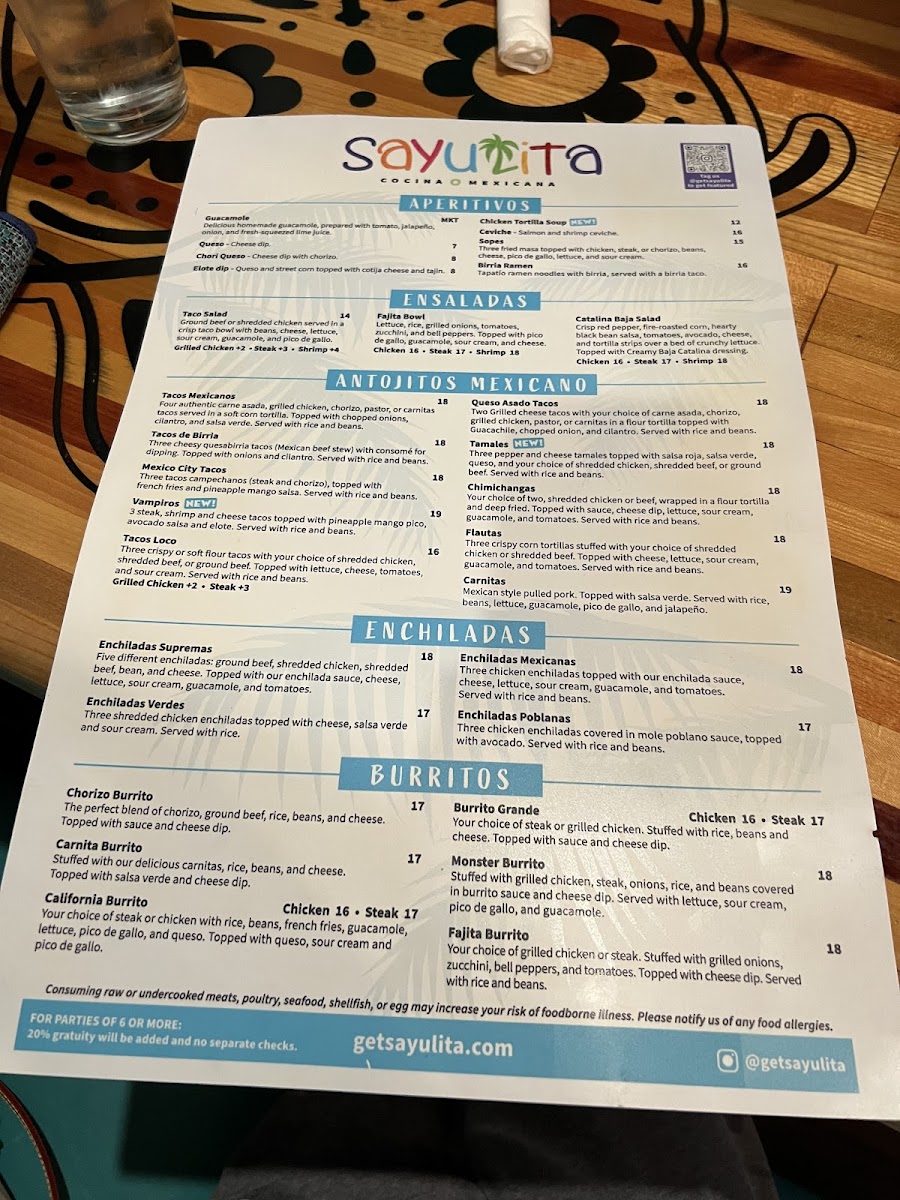 Sayulita Cocina Mexicana Menu